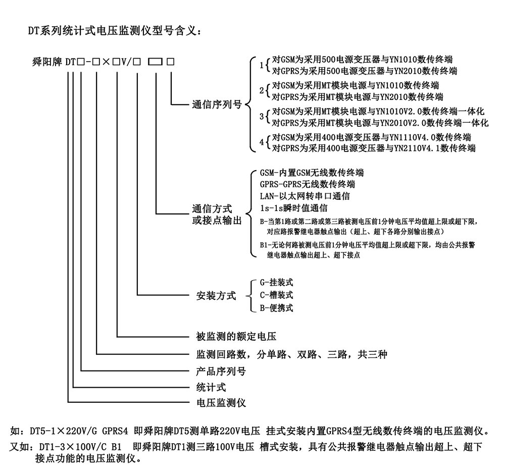 舜陽牌DT系列統(tǒng)計(jì)式電壓監(jiān)測儀型號含義